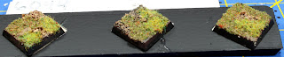 That pretty much does it. You should have some nice looking bases to complete your hard work on your miniature. Give these steps a try and don't be afraid to mix it up. The pictures above are the same steps we followed above, after the flock I added some static grass to the top. That gave them even more depth, and added a touch of realism to them. You can even have a try at some other materials as well. I have seen basis where the painter used dried spices to look like leaves that had fallen from a tree. There are many things you can do, have fun with it. I hope this info helps you. Enjoy.